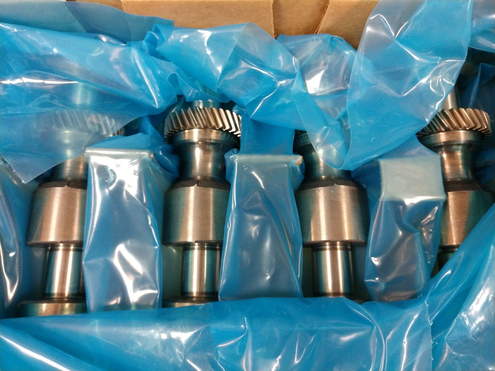Cortec VpCI®-126 bags and VpCI® emitters such as BioPad® make it easy to guard against interim corrosion. These packaging materials release Vapor phase Corrosion Inhibitors that form a protective molecular layer on metal surfaces inside an enclosure. With the right dosage based on component size and storage environment, they can easily provide two years of protection, typically enough to see the parts through the supply chain shortage. The absence of greasy rust preventatives allows parts to be quickly taken out of the package and installed when operations start up again.